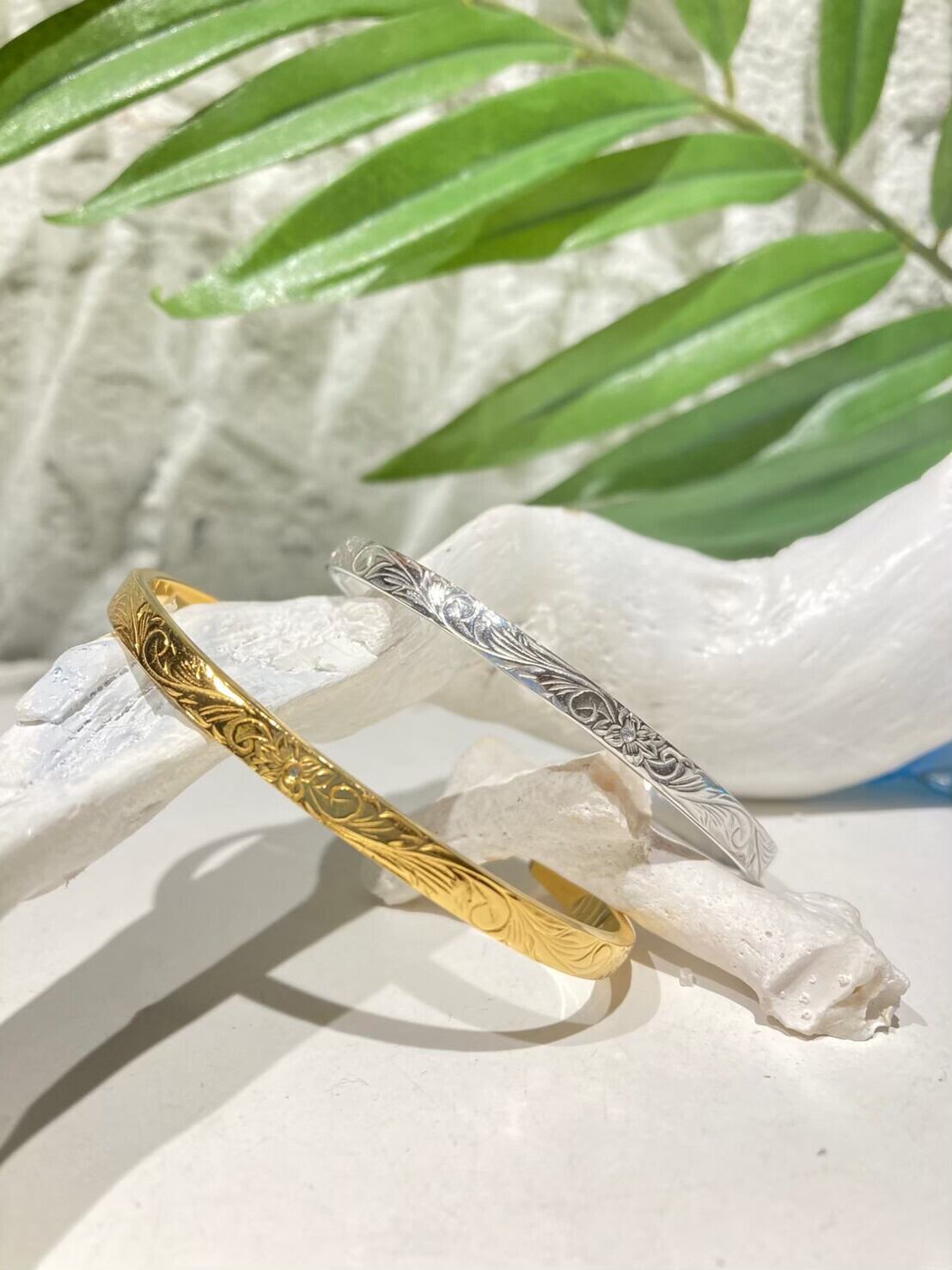 プルメリアスクロールバングル/GLD/SV