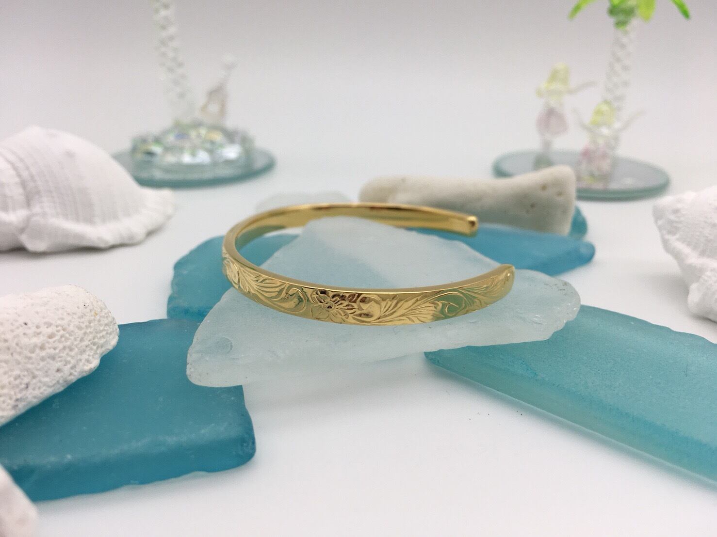 プルメリアと波のデザインバングル