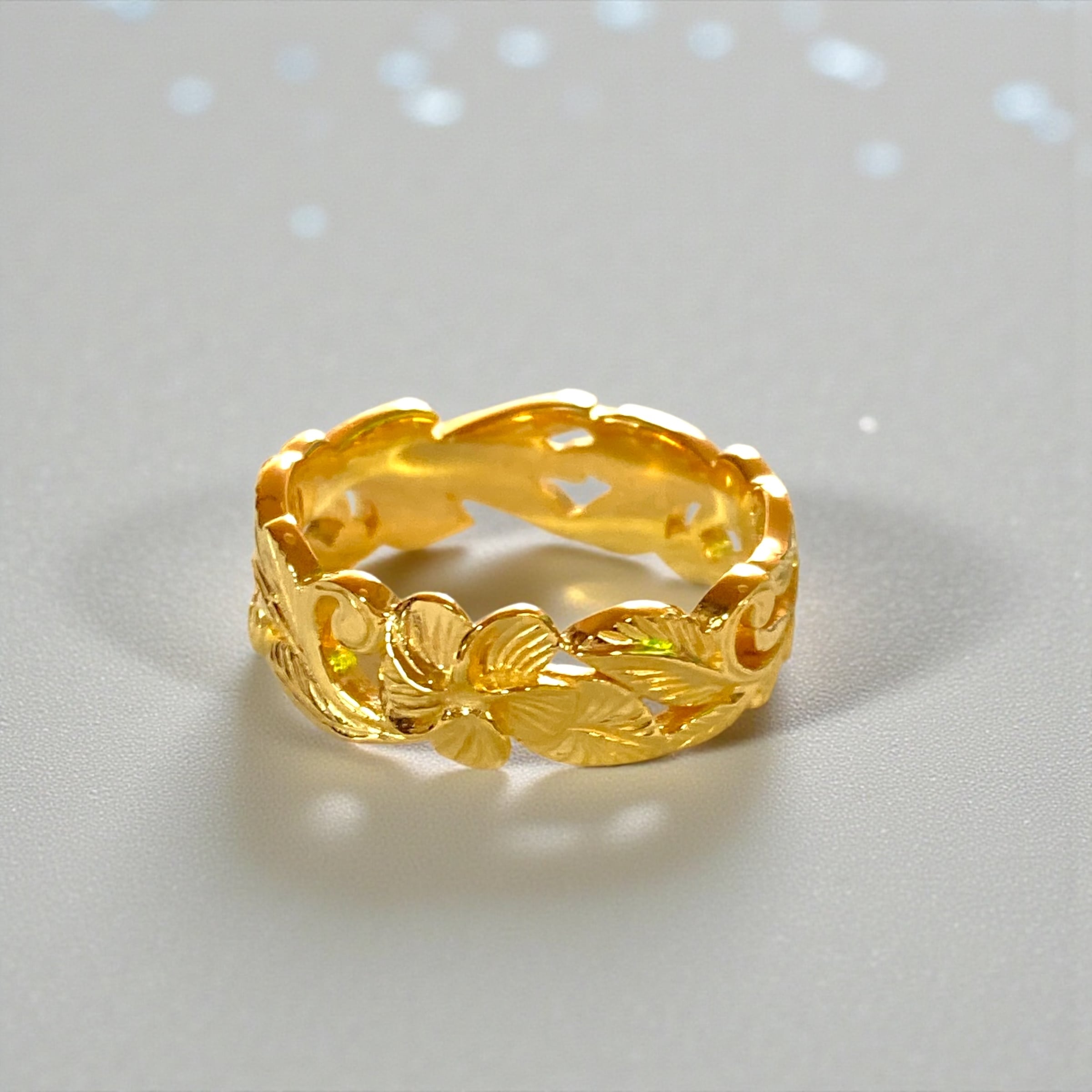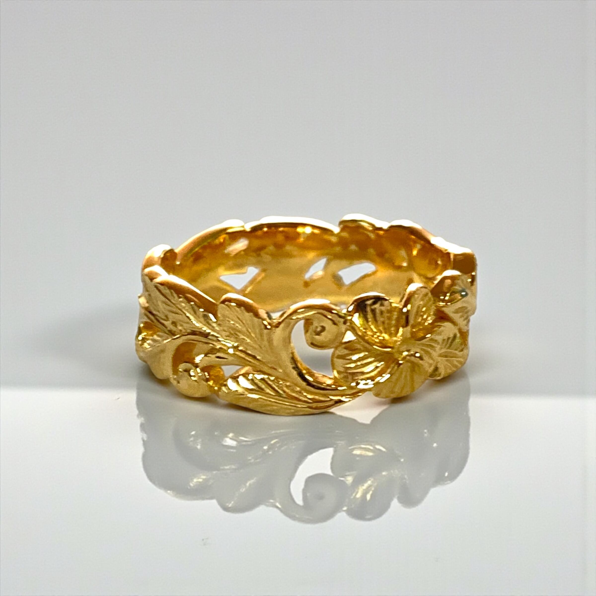 カッティングが素敵なリングは、ハワイのお花プルメリアが中心に!